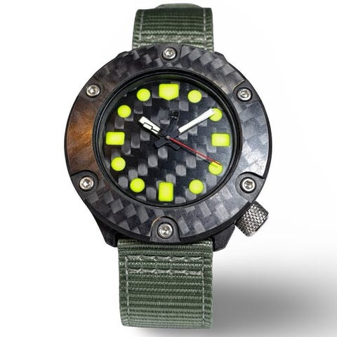 Den militrgrnne urskiven er animert av teksturen Triangle, eksklusiv for NOSTAS: et arkitektonisk mnster som minner om den strukturelle styrken til materialene, et symbol p brandets designrigor.