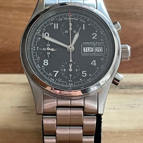 Hamilton Khaki Aviation Pilot Day Date Auto-klokke, med referanse H64705531, ny og komplett med offisielt tilbehr. Den har en 45 mm stl kasse, svart urskive, og et lrreim i okse skinn med spenne.
