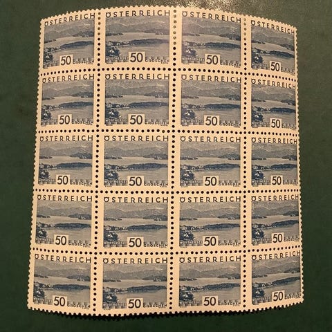 Spennende frimerkeutvalg fra sterrikes ddsbo. Masse postfrisk materiale, delvis i enheter osv. Tillegg flere blokker og smark. Ingen sortering eller kontroll. Prveutvalg viste ren postfrisk kvalitet. En skattekiste for samlere med tid.