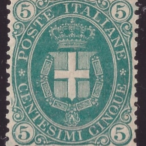 Italias kongerike 1863 - "Dukke av Viktor Emmanuel II" 5c. De La Rue London-preget, ubrukt med intakt gummi (MNH).