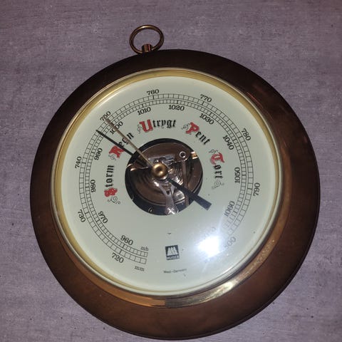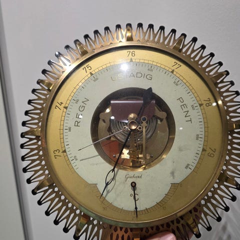Mekanisk barometer med integrert display, funksjonaliteten ikke testet.