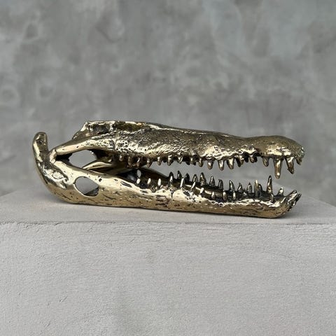 Statue, XXL 105cm! Bronze Crocodile Skull - 57 cm - Bronse