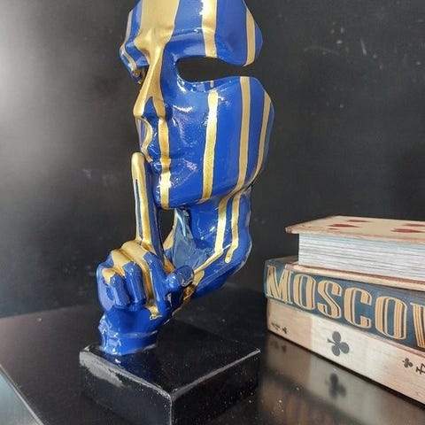 Statue, artistic Statue head on block '' THE SILENCE '' 102 cm height - 102 cm -