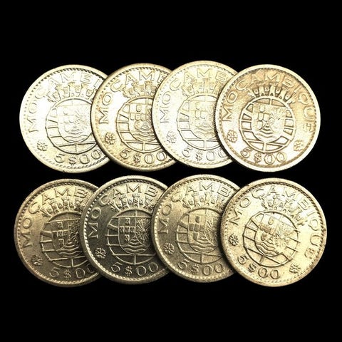 Portugisisk India. Silver 6x 10 Escudos Coins (30gr) 1952/1955 (Ingen reservasjo
