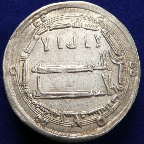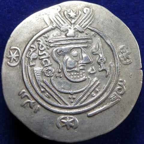 ISLAM - Abbasid-kalifatet. midlertidig Al-Rashid, AH 169-193 / AD 786-809. Tabaristan. Slvhemidrachm eller dirham tabari (1,62 g, 25 mm), anonym type, PYE 135 = AH 170 = AD 786.