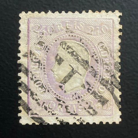Vakkert eksemplar. Et av de frste frimerkene i Portugals historie.