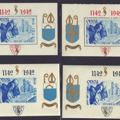 Belgia 1940 - skjoldene - OBP : 538/546 in bladhoek met de kenmerkende hoeklijne
