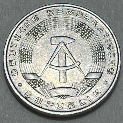 Stort konvolutt med 23 DDR-mynter, inkludert 9 slvmynter!!!! For det meste pene til svrt pene.