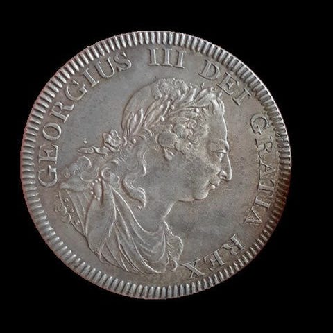 Forsiden viser portrettet av kong Georg IV., mens baksiden viser det klassiske britiske vpenskjoldet fra epoken. Mynten er preget i slv og har beholdt detaljene sine til tross for alderen, noe som gjr den spesielt interessant for bde samlere og historieentusiaster.