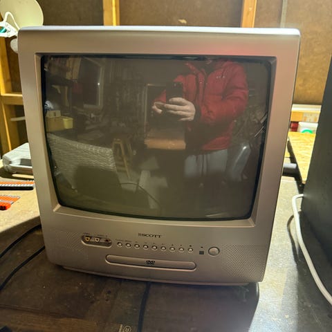 Brbar Thomson-TV 25 MPR 45 CRT-skjerm, med typisk design fra 90-tallet / begynnelsen av 2000-tallet, ideell for samler, retro-spill-entusiast eller vintageinnredning.