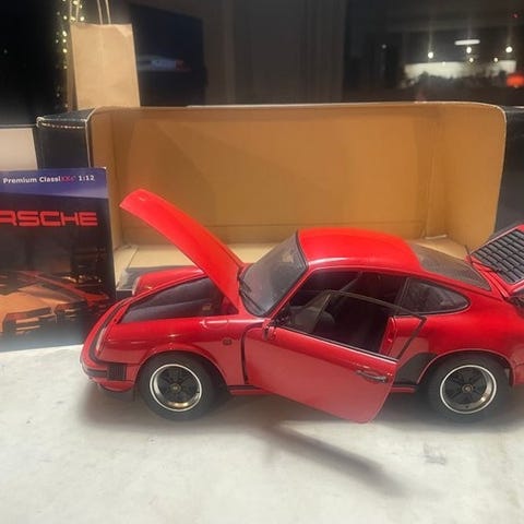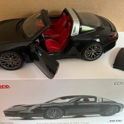 Svrt sjelden Porsche 911 Speedster (1989) i 1:12 skala, produsert av Schuco i et begrenset opplag p bare 500 eksemplarer globalt.