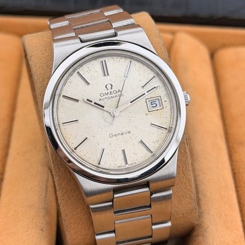 Integrert stil-kasse typisk for Omega-design fra 1970-tallet.
