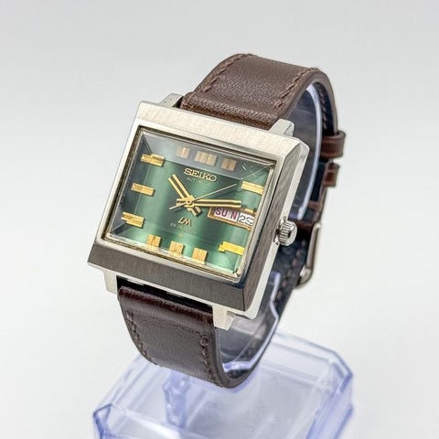 Denne Seiko Lord Matic er et typisk eksempel p japansk klokke-design fra 1970-tallet, som kombinerer dristig geometri med en utskt skivebehandling som fanger lyset s vakkert. Med sitt karakteristiske facetslipte krystall og rike gradientskive, representerer dette urverket Seikos gyldne ra av mekaniske klokker, og ligger rett under King Seiko- og Grand Seiko-linjene i hierarkiet. Det tilbyr en unik estetikk som er bde retro og sofistikert, og gjr den til et overbevisende valg for samlere av vintage japanske klokker.