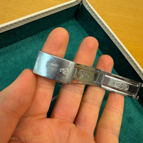 Original Rolex-boks. Vennligst merk at boksen kan vre fra en annen periode p grunn av utskiftning over tid, noe som er vanlig for Rolex-klokker som har blitt servet eller hndtert gjennom rene.