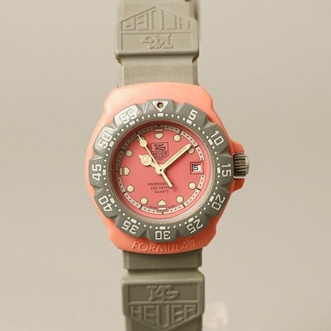 Et tidlst vintage TAG Heuer Formula 1 dameklokke fra 1990-tallet, som kombinerer sveitsisk hndverk, nyaktig quartz-bevegelse og ikonisk sportslig design.