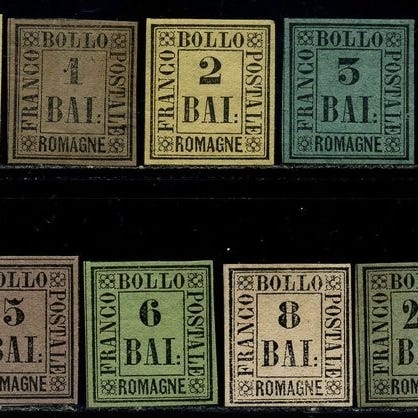 Det pavelige staten brev sendt fra Roma til Napoli den 31/12/1857 frankert med 2 baj i et par hvorav ett er delt i to + 7 baj bl.