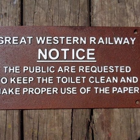 Markedsføringstegn - Ikke bruk toalettet mens toget... - Støpejern