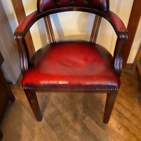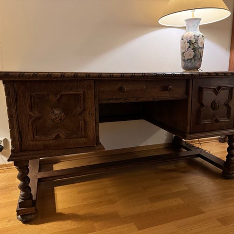 Nydelig Chesterfield skrivebord med nøkkel og Chesterfield kontorstol til salgs. Bord kan deles i 3 separate deler ved frakt.
