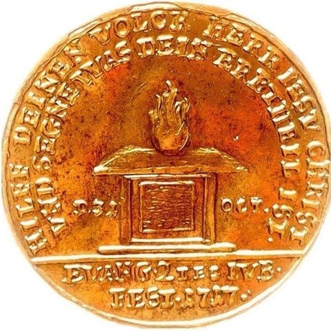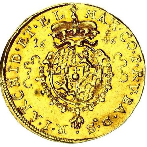 Doppeldukat 1649 mm. Georg Nrnberger d.. (Mmz. Kreuz), lammpreging. Kellner 49, Friedberg 1832. 6,89 g.