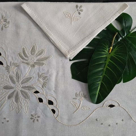 Pizzo Tombolo “Cantù” e ricami fatti a mano - Absolutt mesterverk, bordduk i Tom