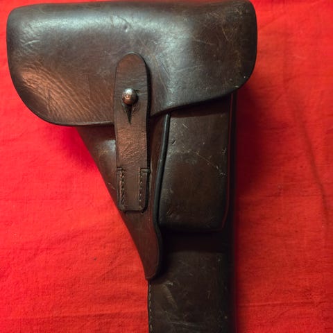 FN Browning pistol M/1922 kaliber .32 ACP (7,65 mm) selges. Pistolen er produsert av Fabrique Nationale d'Armes de Guerre i Belgia. Pistoltypen ble benyttet i Forsvaret etter 2. verdenskrig, og er omtalt i boken "Skytevåpen benyttet av Forsvaret etter 1859", side 29. Akkurat denne pistolen er merket "RPLT" for dansk politi. Det ble produsert 3000 slike pistoler for danskene med slik merking.