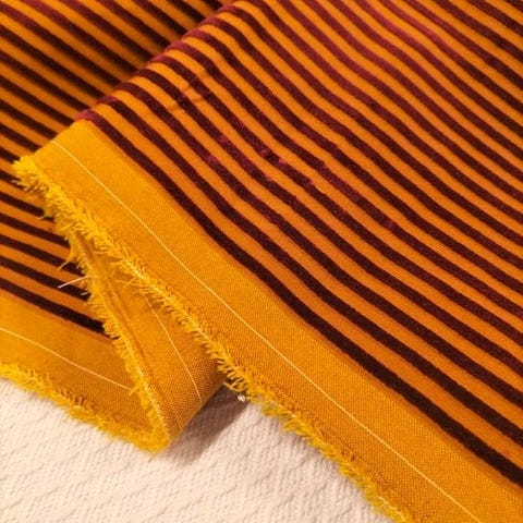 Magnifikt bomullsstoff med quiltet design med gule striper, av enestende kvalitet og farge.
