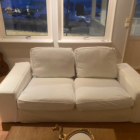 Sofaen har komfortable seter som gjør at du sitter dypt og behagelig! I tillegg er det et stoff som er enkelt å holder rent, noe som forlenger sofaens levetid.
