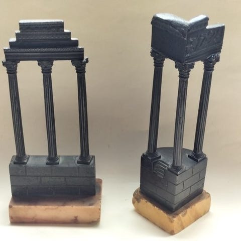 De to delene vi ser er et par rikt utsmykkede Solomonske syler eller rekkverkspiler, laget av tre og dekket med overddig gullblad. De er 72 cm hye, og strrelsen antyder at de var viktige og fremtredende elementer i et strre ensemble, som sidekolonner i et alterbilde, pilastre i et tabernakel, eller de utsmykkede, snurte benene p et fint mbel.