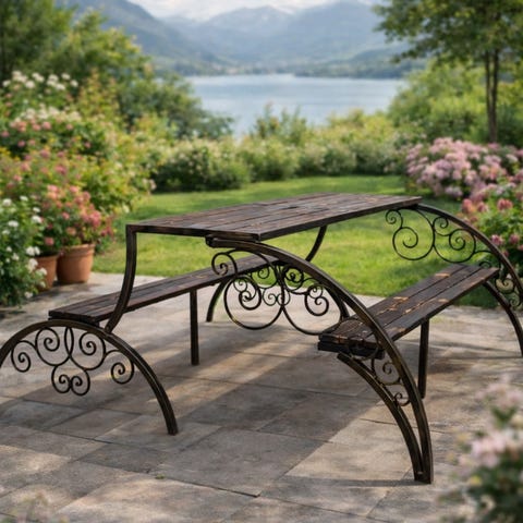 Elegant halvrundt boom-bord med iynefallende fine detaljer. Vakker utformet ryggsttte og sider.