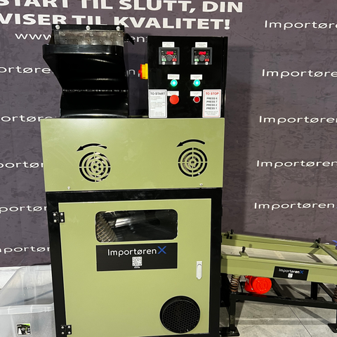 Maskinen leveres med ristebord, som sikrer effektiv separasjon av kobber og plast ved hjelp av vibrasjon og luftstrøm. Dette gir høy kvalitet på sluttproduktet og stabil drift.