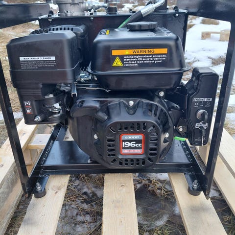 Hydraulikkstasjon komplett med 6,5 hk bensinmotor, hydraulikkpumpe og 9 liters tank. Montert på plate og inkl. 2 slanger til tilkobling