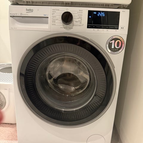 9 kg kapasitet, 1600 o/min, dampfunksjon, stillegående børsteløs motor, hurtigprogram (14 min), AntiCrease+ og Bluetooth.