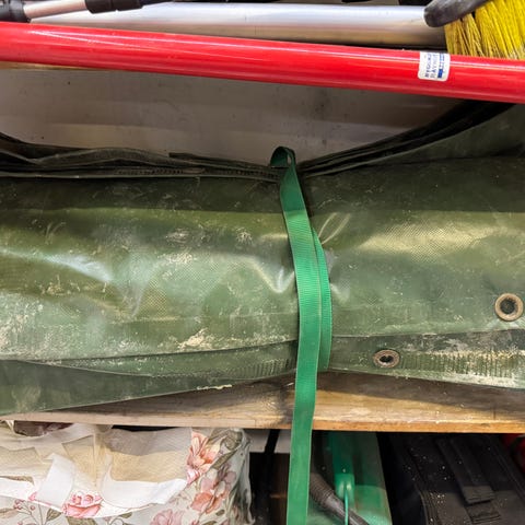 Sterk presenning med forsterket kant og maljer hver meter.