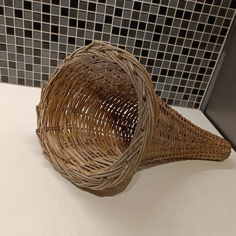 Denne dekorative cornucopiaen har rik detaljering med metalliske frukt- og bladmotiver, og skaper et iynefallende og luksurist utsagnsobjekt. Symboliserer overflod og velstand, og tilfrer klassisk eleganse til ethvert interir. Et perfekt dekorativt preg for konsoller, skap eller utstillingsbord.