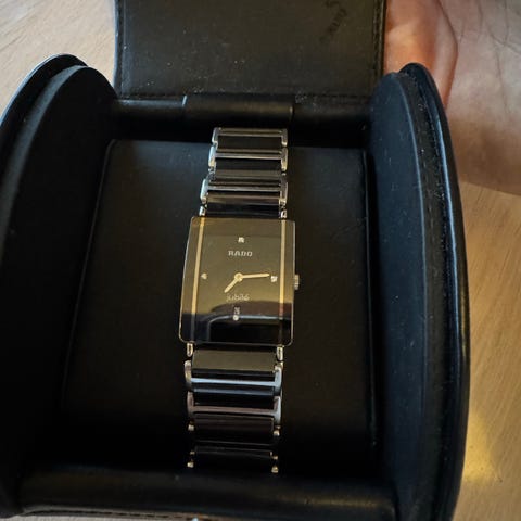Gullbelagt stl og svart keramikkreim, butterfly-ls med noen f lette bruksmerker.