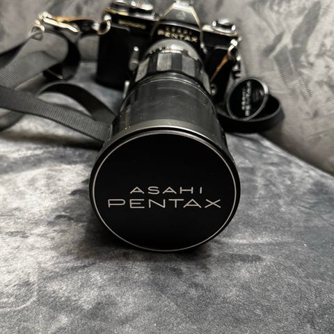 Komplett med den ettertraktede SMC Takumar 200 mm-linsen og den sjeldne NPC Polaroid-bakplaten for maksimal allsidighet.