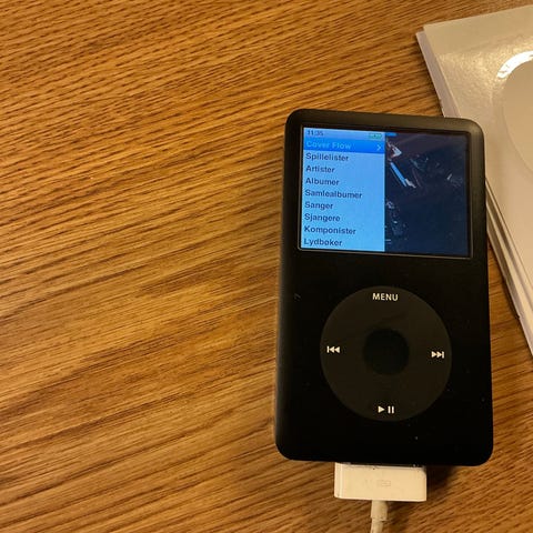 160 GB iPod classic (sent 2009) har harddisk, stor fargeskjerm og et klikkehjul, og kan vise bilder og videoer. Data synkroniseres via en USB-tilkobling. Selges med ladekabel og beskyttelsesetui (se bilder).
