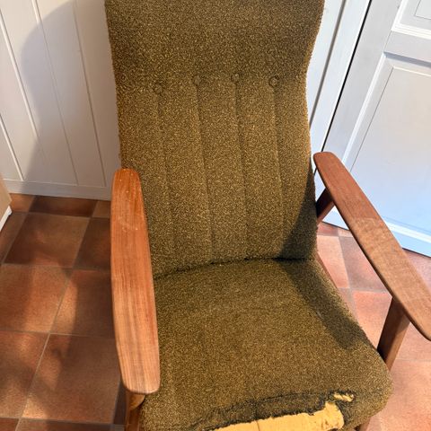2stk Nydelig Vintage Lenestoler i teak og stoff med gynge funksjon. Lenestolene er perfekt vintage stand.