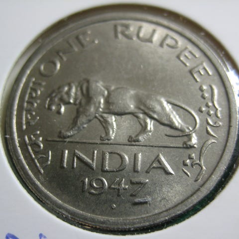 1 Rupia 1947 - GENI - MS 63 - Sjelden