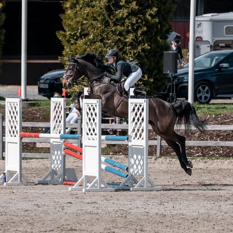 Du får prøve hesten under alle forhold om du ønsker det. Vi har 2 ridehus, stor fiberbunn ridebane med ferdig oppsatt hinderbane.