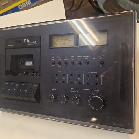 Fra Luxmans beste ra inkluderer denne K-8-bndspilleren en 12-prikk fluorescerende toppnivindikator, digital bndteller, finjustering av bias, Dolby styreduksjon, innspilling med timer..