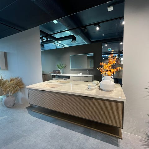 Dansani, Dansani Mido+, Dansani Mido+ Classic, baderomsmøbel, servantskap 80 cm, badmøbel 80, lyseblå baderomsmøbel, matt blå bad, stripet front, moderne bad, dansk design, servantskap med skuff, ope rom bad, speilskap med lys, speilskap LED, servant Amber, Fima Spot, servantbatteri matt svart, komplett baderomsmøbel, utstillingsmodell, tilbod bad, kampanje baderom, bad oppussing, nytt bad, hyttebad, baderom Førde, Dale Rør AS