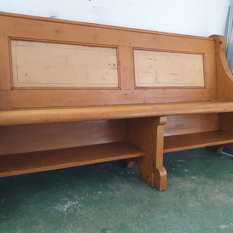 Søkeord: trebenk, langbenk, benk, stol, gammel, krakk, kirke, stol, hyttebenk, langbord.