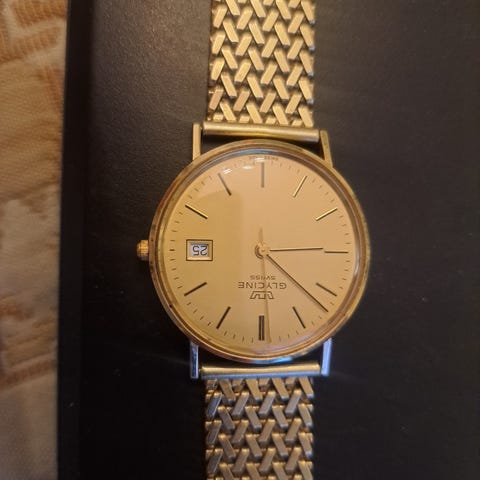 Vakkert todelt hvitt emalje-urverksskive svrt godt bevart. Veldig vakre svarte romanske tall. Fine filigrane lekne stlvisere gullfargede. Liten innfelt sekundviser ved klokka seks, ytre lpende sammenhengende minuttskive og chronograf-sekundeskala med innvendige arabiske tall for 5-erne. 1/5-sekundinndeling i svart. Chronografvise ogs gullfargede. Meget god stand.