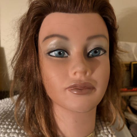 Sibel Professional "Francine" treningshode med ekte mørkt hår for styling og klipping.