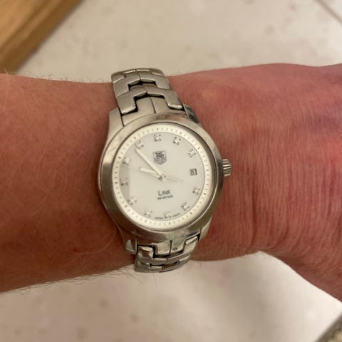 Tilstand: brukt, 7/8 omtrent 10 i tilstand, klokke + armbnd = 17 cm langt