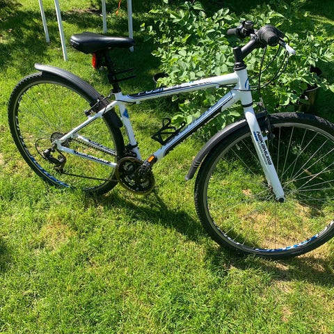 Sykkelen er av merke Merida Crossway. Den har 24 gir, og en ramme størrelse på 50 cm. Dekkene er på 28 tommer. Service er utført, og nødvendige deler er byttet ut.