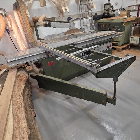 Høykvalitets pneumatisk oppkuttsag fra Stromab (Italia), modell TR 350, produsert i 2021. Maskinen er lite brukt og fremstår i utmerket tilstand – perfekt for snekkeri, møbelproduksjon eller industriell trebearbeiding.Driftstimer: 5t