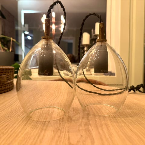 Du vil motta en svart strmkabel, en bronsefitting og en matt svart plafonniere med lampekuppel. Lyspren er ikke inkludert.
