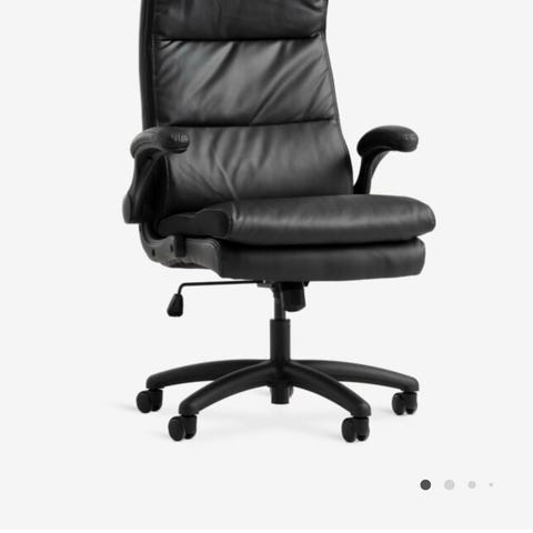 Stol i sort skinn selges for 5000.-